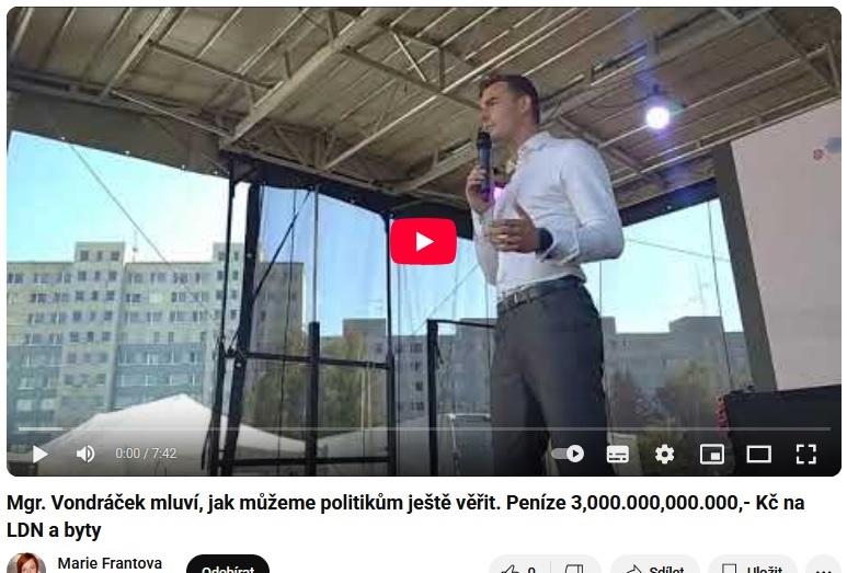 Když vidím Váš nabitý pracovní program politika a předsedy, tak je mi úplně jasné, že na nic jiného prostě nemáte a ani nemůžete mít čas. Ale já Váš čas je svému projektu levné byty a LDN areály nepotřebuji.