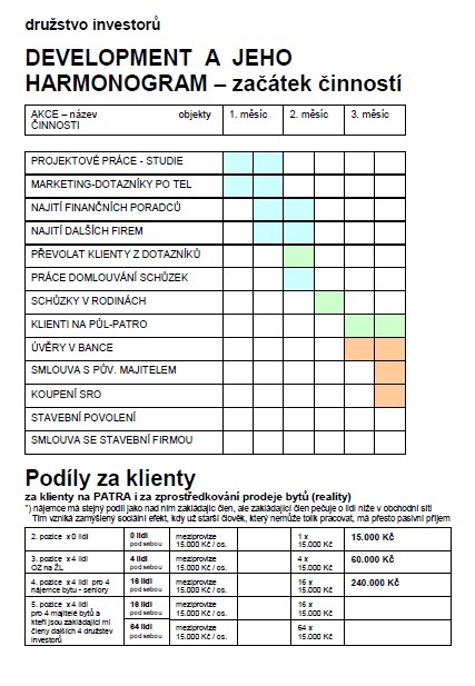 Je to tak, že když bude mít 1 byt 2+kk – 50 m2 Pavel Houra, tak bude na 5. Pozici a bude mít 4 Zelené karty na 4 lidi pod sebou a z nich meziprovize za jimi dosažené výsledky, za jimi sehnané další klienty. Pro Pavla Houru výhodná věc, podívejte se na to jeho očima, že má třeba 30.000,- Kč měsíčně za 4 klienty od 4 lidí pod sebou (na svých grafech produktivity).