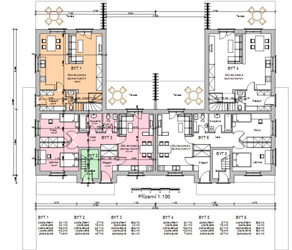 Svojetice. Projekt vždy 6 bytů na 2 stavebních parcelách. Zástavba vesnického typu. Byty 4+1, 3+1 a 3+1. A 4+1, 3+1 a 3+1. Vždy 6 bytů jako jedno zemědělské stavení. Zde vidíte. Stavební pozemky od 793 m2 až 1.529 m2 Cena za pozemek jako pole a k tomu sítě a komunikace. Cena bytů 30% od 1,135.000,- Kč. Na webových stránkách společnosti najdete více informací.