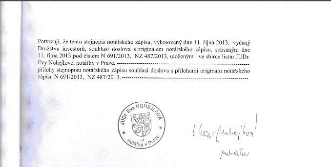 Podmínky k emisi těchto nemovitostních dluhopisů jako záruky na složené členské vklady k notářce do úschovy na koupi předmětného celého pozemku.