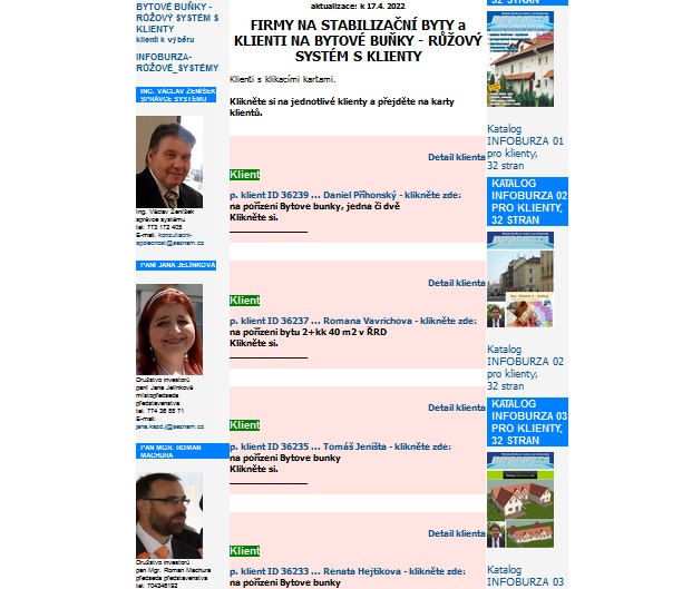 NÁŠ RŮŽOVÝ SYSTÉM - na BYTOVÉ BUŇKY - klienti, klikací, karty ID jednotlivých klientů. Ty lze posílat jako odkazy v SMS zprávě. A i kopírovat na Whatsapp. Aby klient tak nějak zběžně věděl, co si o něm evidujeme.
